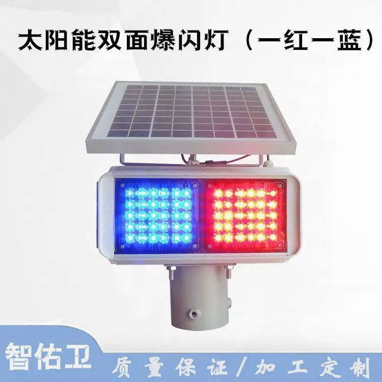 交通道路施工安全提示灯太阳能爆闪灯红蓝双面频闪警示灯