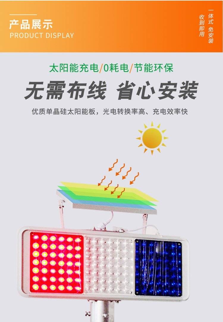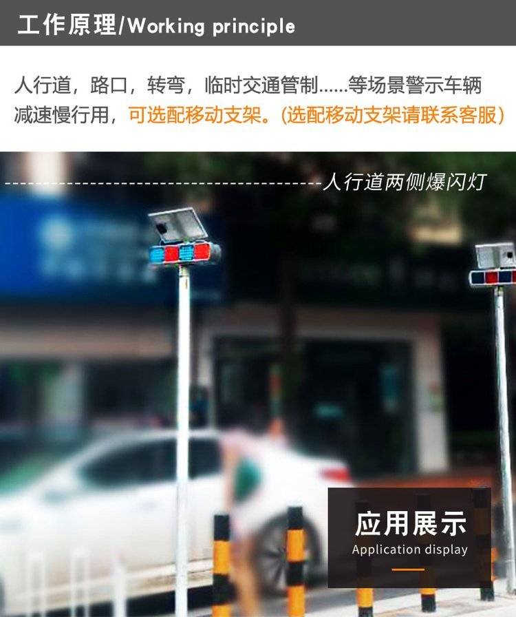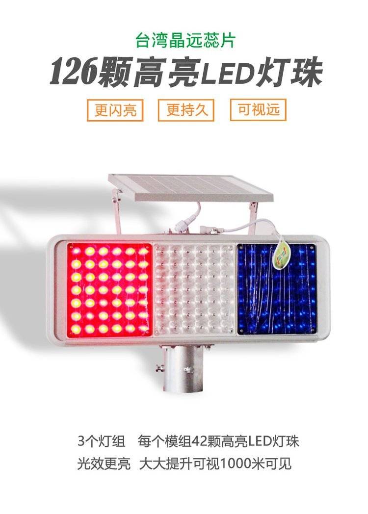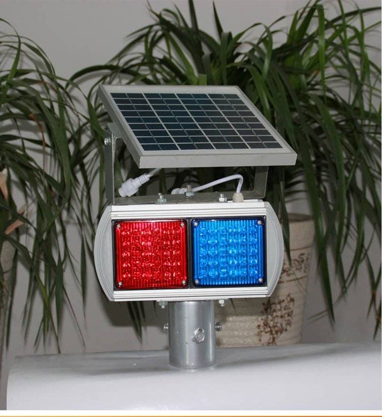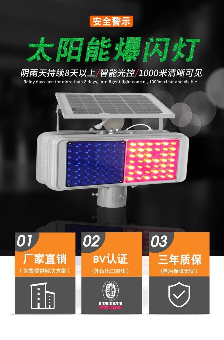 交通道路施工安全提示灯太阳能爆闪灯红蓝双面频闪警示灯